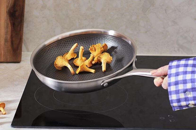 Ценители качественных тефлоновых сковород наверняка могут доказать своими кулинарными шедеврами, что именно это покрытие гарантирует самую яркую, румяную, идеальную хрустящую корочку. Однако для достижения такого эффекта приходится, не жалея сил, защищать любимую посуду от «опасных» металлических предметов. С тревогами покончено – сковороды Etalon больше не боятся металла и царапин. Прогресс не стоит на месте, а с ним продолжают развиваться и тефлоновые технологии. Бренд Liberty Jones представляет усовершенствованное, еще более прочное и безопасное покрытие 3Ply Etalon с лазерным напылением. Сковороды 3Ply Etalon имеют особое структурное дно Honeycomb. Благодаря технологии «сотового» лазерного напыления оно настолько устойчиво к царапинам, что позволяет свободно использовать в процессе приготовления любые металлические кухонные инструменты без риска повредить его. Теперь вы смело можете помешать поджарку металлической ложкой, проверить готовность мяса, надрезав его ножом, или выкладыва