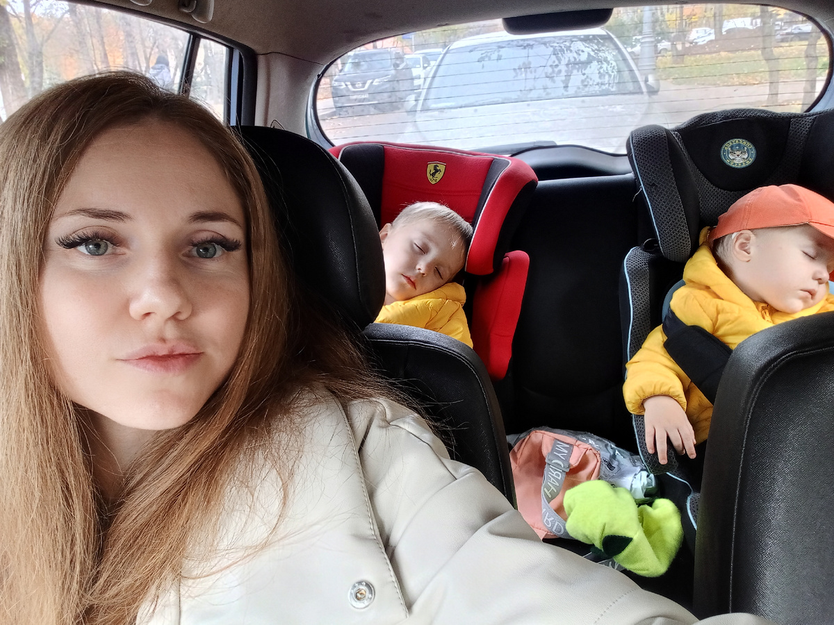 Поехала специально часов в 11-12, чтобы у них случился сон в машине, потому что уложить их на новом месте было бы нереально. А не спать -это еще не про них. Леон проснулся в семь и всё утро мы слушали его недовольство.