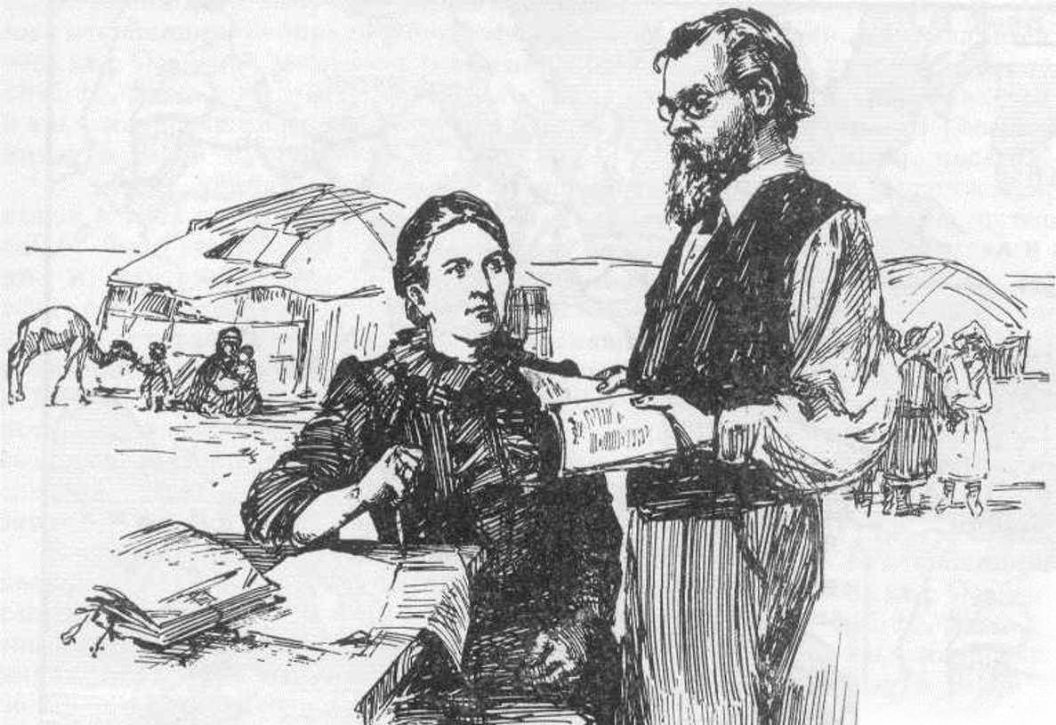 В 1872 году Александра Викторовна, урождённая Лаврская, приехала в Никольск навестить брата Константина, сосланного туда за революционную деятельность. И познакомилась с его другом Григорием, тоже ссыльным. Он был на восемь лет старше и повидал немало: в 1854 году участвовал в военной экспедиции в Заилийский край, в 1863–1864 годах по рекомендации Петра Семёнова-Тян-Шанского сопровождал Карла Струве в экспедиции на озеро Зайсан, в верховья реки Иртыш и на хребет Тарбагатай – в его задачи входило исследование рыболовства и сбор образцов флоры. В 1873 году он получил свою первую медаль ИРГО – Малую серебряную, а в 1874 году по ходатайству Императорского Русского географического общества Григория Николаевича амнистировали. В том же году они с Александрой поженились.