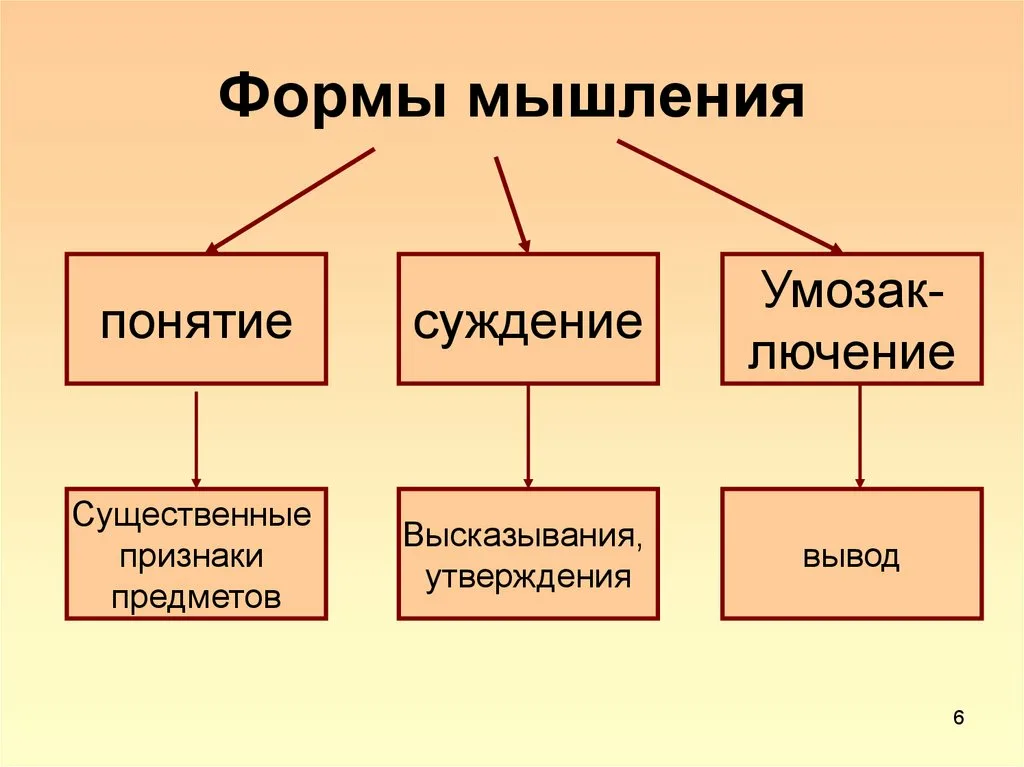 Это форма мышления, которая отражает общие свойства и признаки предметов или явлений. Например, "дерево" как обобщение для всех деревьев.