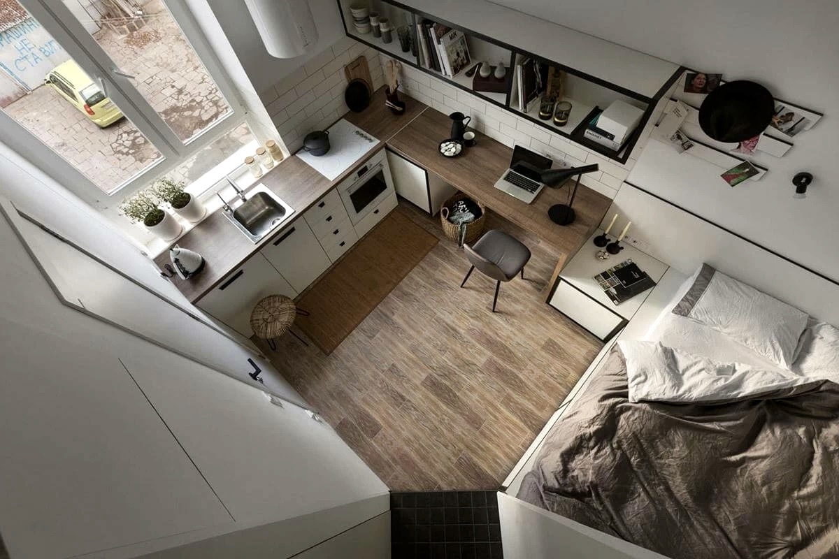 Микроквартиры — это жилые помещения площадью от 10 до 20 квадратных метров. Они представляют собой компактное пространство, включающее зону для отдыха, кухни, ванной и иногда рабочего места. Обычно такие квартиры имеют открытое планировочное решение, позволяющее эффективно использовать каждый квадратный метр.