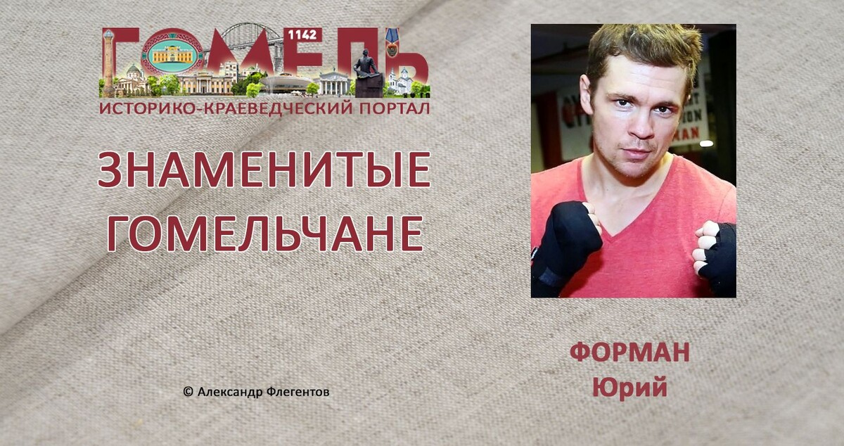 Юрий Форман (05.08.1980, Гомель) — израильский и американский боксёр. Чемпион мира по боксу по версии WBA во втором полусреднем весе (до 70 кг) (2009). В спорте с 7 лет. В возрасте 9 лет с семьёй репатрировался в Израиль. Призёр трёх национальных чемпионатов. Позднее спортсмен переезжает в Бруклин (Нью-Йорк, США) и в 2000 и 2001 году становится призёром (бронза) турнира по боксу «Золотые перчатки», а в 2003 году выходит на свой первый профессиональный бой. Боксёр в среднем весе. Провёл 30 боев, 28 побед, 2 поражения. Последним успехом Формана стала победа над Даниэлем Сантосом в матче на звание чемпиона мира по версии WBA во втором полусреднем весе. Считается одним из ведущих боксеров-эмигрантов из бывшего СССР, наряду с Д. Салитой (29 побед, 1 поражение) и Р. Гринбергом (27 побед, 1 ничья). Тренер — Томи Брукс (тренер Эвандера Холифилда, Майка Тайсона и других). Юрий Форман также изучал Талмуд и Каббалу при институте IYYUN и Еврейском образовательном центре на протяжении н