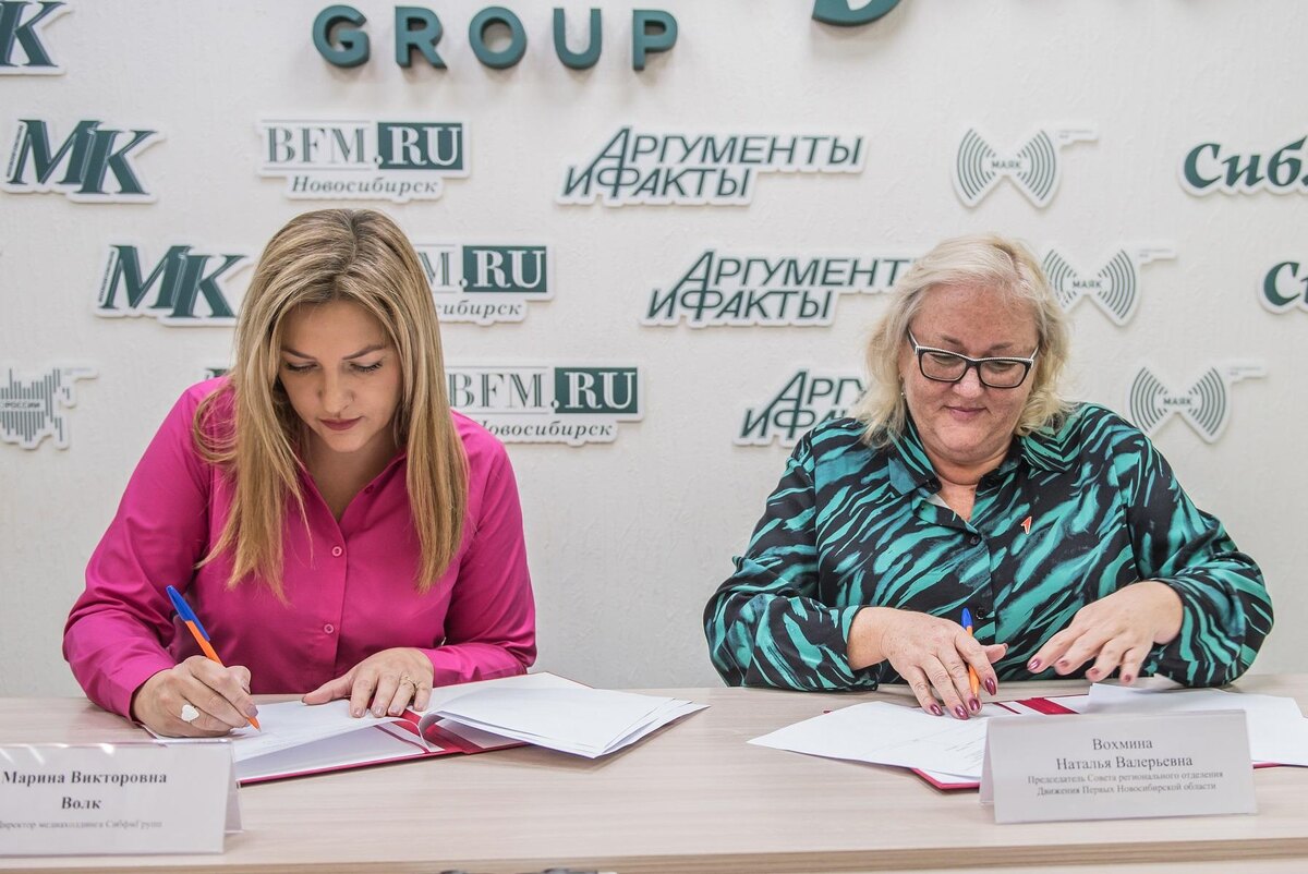 Руководители Сиб.фм Групп и Движения Первых Новосибирской области подписали соглашение о сотрудничестве. Свои подписи поставили директор медиахолдинга Марина Волк и председатель Совета регионального отделения Движения Первых Наталья Вохмина. «Мы обязательно будем усиливать друг друга, привлекать к нашим событиям как можно больше молодежи, детей Новосибирска и вместе станем давать им лучшее патриотическое и нравственное воспитание», – прокомментировала Марина Волк. Подписанное соглашение даст новый импульс взаимодействию Сиб.фм Групп и Движения Первых, позволит объединить усилия по сохранению и популяризации исторического наследия нашей страны, воспитанию патриотизма и формированию у детей и молодежи активной гражданской позиции. «Ни одно из региональных отделений Движения Первых не может гордиться таким соглашением. У нас есть большой опыт сотрудничества со СМИ, но это все как-то локально выходит: там газета, здесь сайт, тут какое-то событие, которое надо осветить. Но чтобы вот так, с
