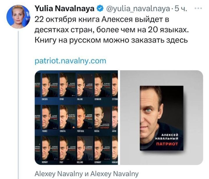 Юлия Навальная анонсировала выход 22 октября новой книги Алексея Навального с оригинальным автографом автора.