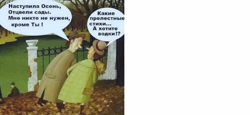 Стихи бывают разные – забывчивые и заразные. Это стихотворение родилось на фоне романтической осенней поры. Оно маленькое и поместилось на картинке. Это стихотворение о неразлучной с лета паре, пишет ufatimes. Целое лето продолжался их роман. И вот полетели жёлтые листья, задул промозглый ветер, но любовь не увядает. Мужчина, вдохновленный постоянством чувств своей спутницы, произносит незамысловатое стихотворение. Оно отражает его глубокие переживания и служит заверением, что любовь продолжится. Может, даже целую зиму. А там опять весна, опять гормоны в голове… Женщина, выслушав поэтический надрыв мужчины, понимает, что единственным расслабляющим его средством станет этот популярный на Руси напиток. Она понимает, насколько высоко он оценит её предложение. Они придут домой и под хрустальный звон посмотрят новости. Про «Эир Индия» – здесь. Про итальянское суррогатное материнство – там. Ufatimes.ru - новости, нацеленные на поддержание у аудитории только позитивного и хорошего настроения