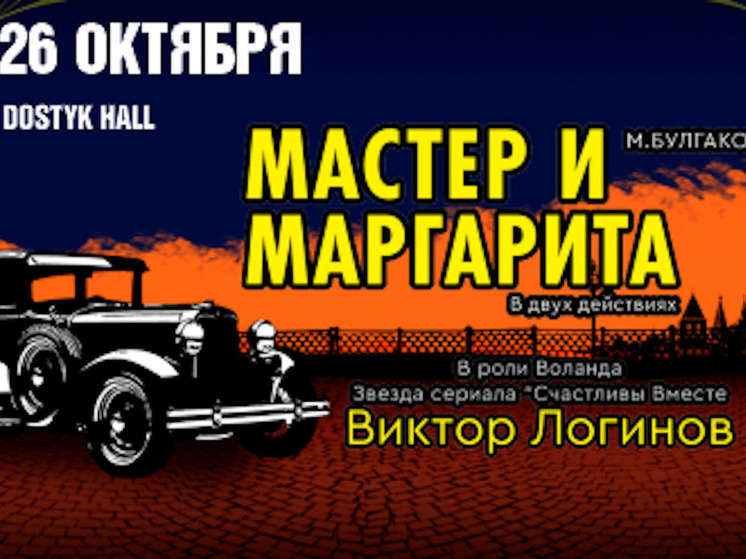 26 октября. Каспийский университет (DOSTYK HALL). Легендарный спектакль «Мастер и Маргарита». В главной роли Виктор Логинов. Все признают, что «Мастер и Маргарита» не охотно поддается постановке. Не так-то это просто внести довольно крупное произведение в рамки спектакля. Задачу усложняют тесно-тонкое переплетение сюжетных линий, да и вообще роман сам по себе окутан мистическим ореолом. Режиссер театра на «Юго-Западе» Валерий Белякович не побоялся осуществить постановку. Необычно, оригинально, блестяще. Такие эмоции переполняли зрителей, когда на сцене разыгрывалось настоящее мистическое действо. Удачно продуманные режиссером мизансцены, множество танцев, роскошные костюмы, лазерное шоу, мастерство художника по свету и блестящая игра актеров раздвинули тесную черноту и сделали, как казалось, невозможное: знаменитый роман наконец-то ожил на сцене. Билеты: https://showmarket.kz/event/master-margarita