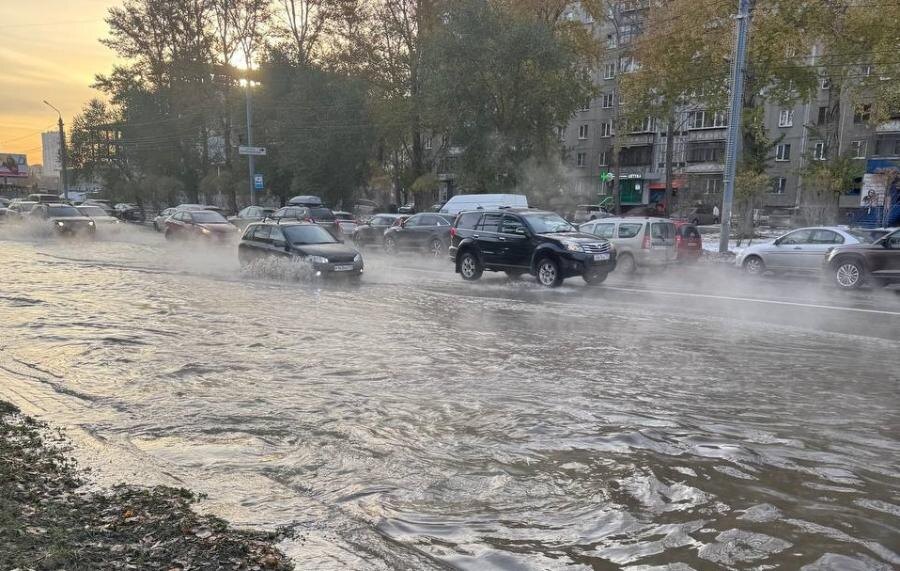Как сообщили в мэрии, из-за прорыва на сетях водоотведения большой поток воды залил проезжую часть возле дома 54 по улице Братьев Кашириных.