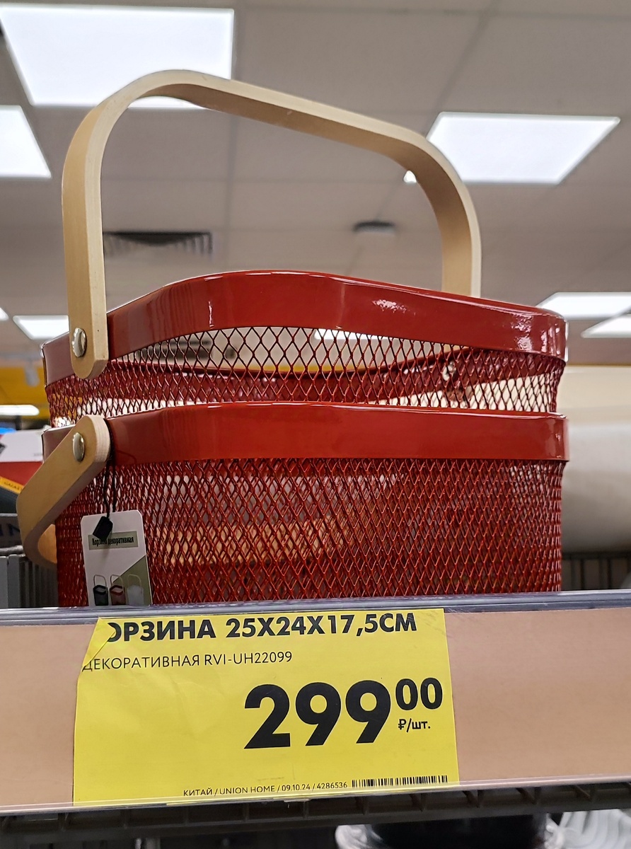 Эта корзинка дороже на 50₽ чем фикспрайсовская, но она и сделана по-другому (этот вариант больше похож на своего прародителя из ИКЕА), плюс у неё более толстая ручка и крепление ручки эстетичное - в фикспрайсовской обычные винтики.