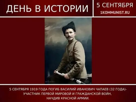 - Пятое сентября 1964 года, 45 лет со дня гибели Чапаева.