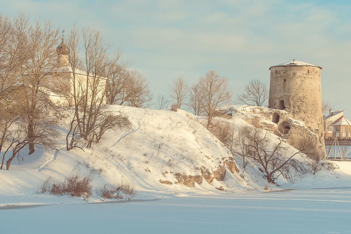 - Природа и уют. Зимние пейзажи вокруг Пскова завораживают. В тихом городке можно не только погрузиться в историю, но и насладиться зимней природой.