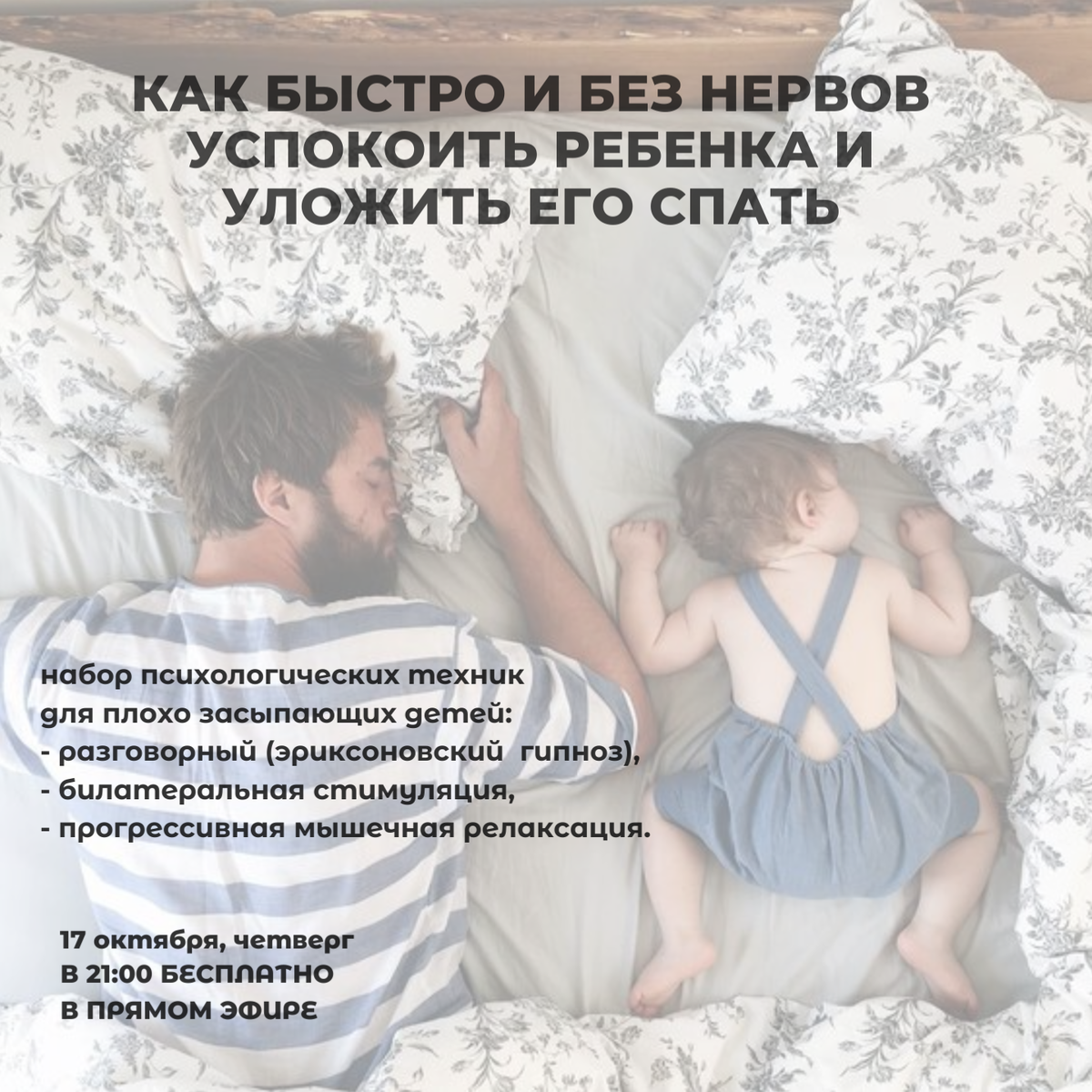 КАК ЗА 15 МИНУТ УЛОЖИТЬ СПАТЬ РАЗЫГРАВШЕГОСЯ РЕБЕНКА Сегодня в 21 час в прямом эфире расскажу, как можно быстро и деликатно успокоить почти любого ребенка, чтобы он спал спокойно и глубоко.😵 Допустим, вы - хорошие и любящие свое ненаглядное чадо родители. День с малышом прошел активно. Пора спать.🤭 Но не тут-то было! 😃 Ребенок вдруг "оживает", начинает проявлять активность, веселится или наоборот, капризничает, плачет. В общем, спать никак не хочет. Что делают любящие родители? 🥴 Предлагают ребенку сказку в обмен на засыпание. Отличный вариант! Получается? Не всегда. Давайте разберемся, почему ваши сказки "работают" иногда наоборот, еще больше возбуждая малыша. Или он вам заявляет, что одной истории маловато будет, требует продолжения. А вы уже и так умотались за день и ваши 3-4 короткие сказочки ему неинтересны, а на длинные повествования у вас уже нет ни сил, ни желания? Что можно придумать родителям? Как, не напрягаясь, быстро и деликатно успокоить ребенка и "переключить" его