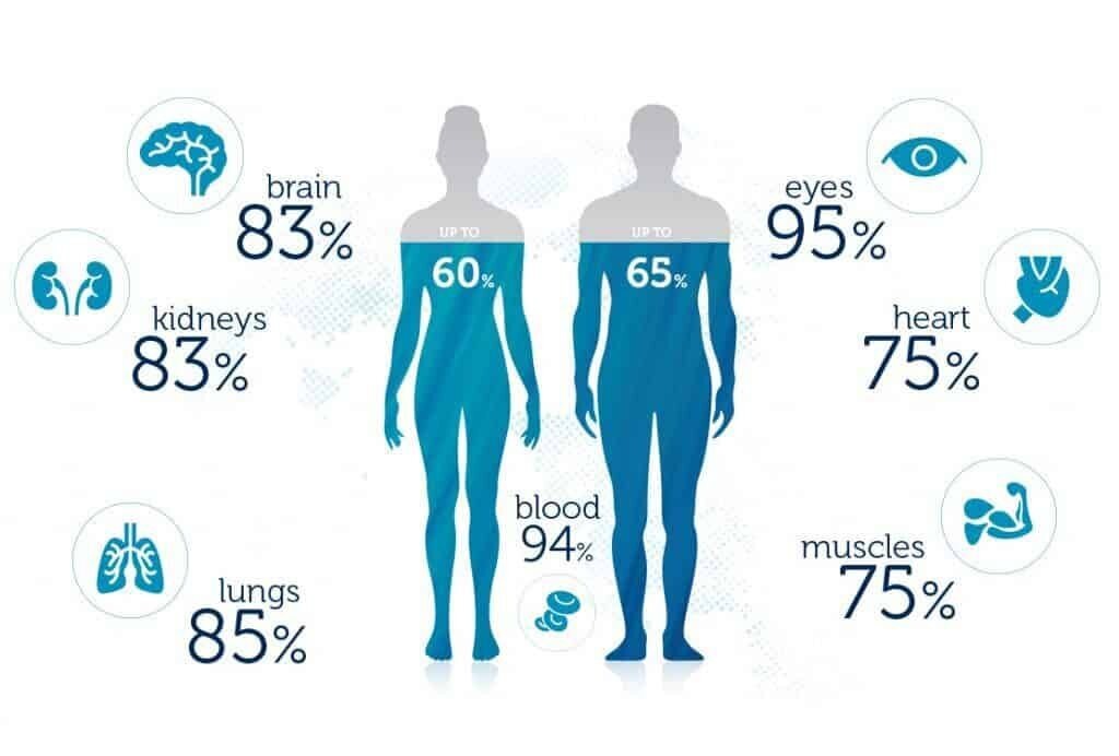 Это моя любимая картинка для наглядности - содержание воды в теле человека: