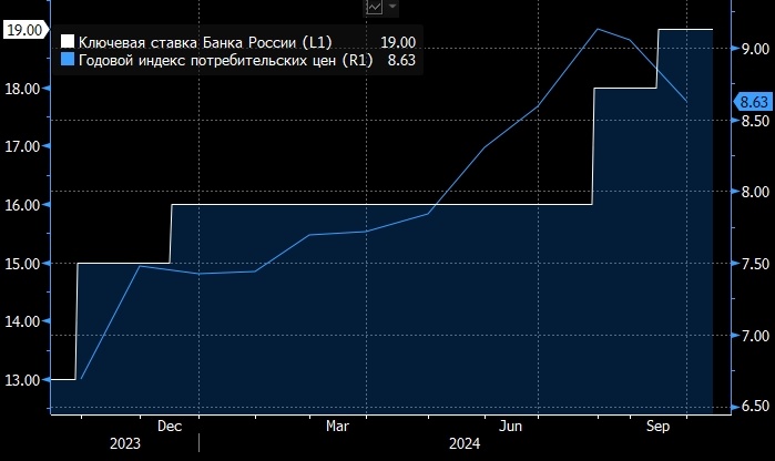 Рост инфляционных ожиданий может стать решающим аргументом для повышения ставки ЦБР в октябре - Райффайзенбанк Рост инфляционных ожиданий может стать решающим аргументом для повышения ставки ЦБР в октябре, считают аналитики Райффайзенбанка. "По данным опроса инФОМ по заказу ЦБ РФ, наблюдаемая (15,3%) и ожидаемая (13,4%) инфляция в октябре повысились, - отмечают эксперты в комментарии. - После довольно разочаровывающей картины месячной инфляции за сентябрь, новые данные по инфляционным ожиданиям выступают еще одним аргументом за повышение ключевой ставки на октябрьском заседании. На сегодняшний день, пожалуй, нет ни одного индикатора, который бы не давал аргументов в пользу жесткости ДКП - помимо инфляции и инфляционных ожиданий за это выступают и высокие темпы кредитования (напомним, что кредиты населению в рублях без учета ипотеки растут более чем на 15% г/г), и слабый рубль (он находится на годовых минимумах), и более стимулирующая бюджетная политика (напомним, что новый план Федерал