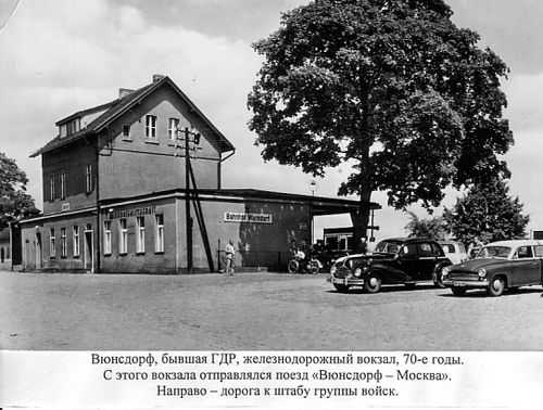 Через некоторое время мы уже подъезжали к конечному пункту нашего маршрута и увидели на вокзале небольших размеров надпись: «Вюнсдорф».