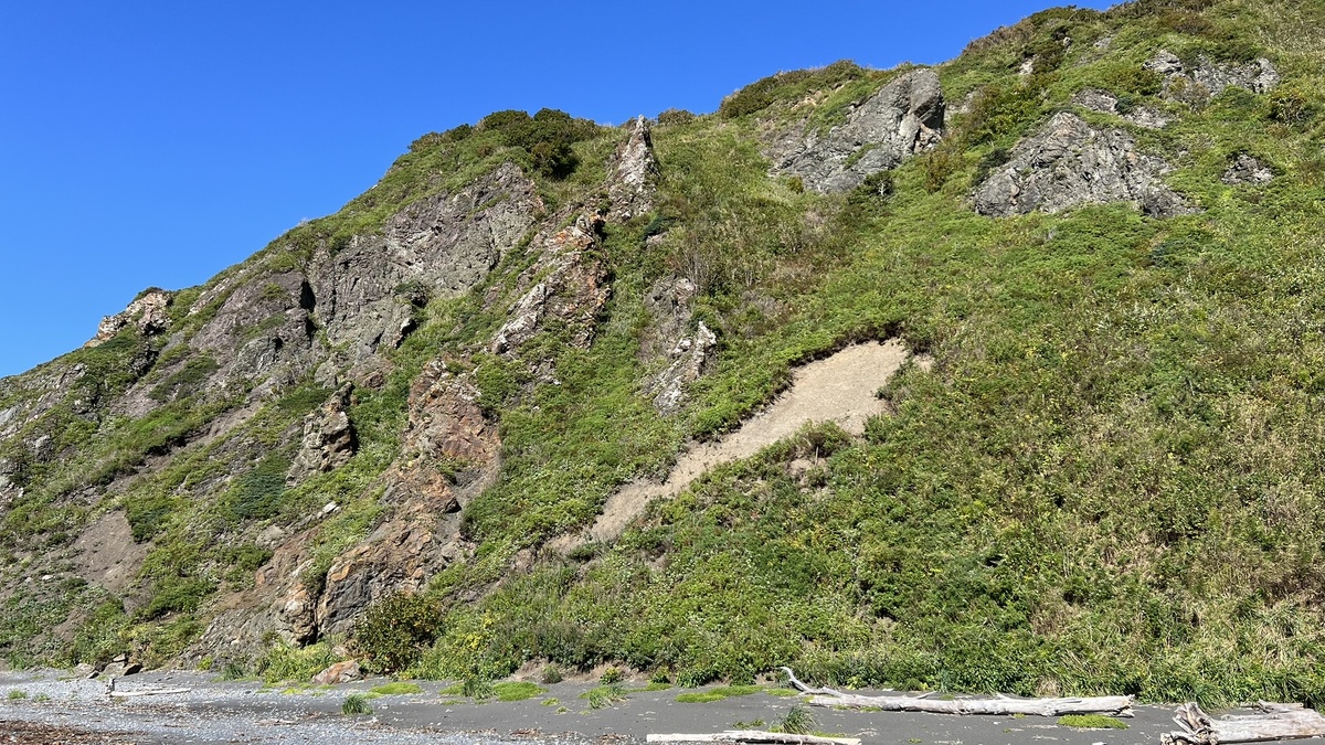 Осенью 2022-го я побывал у устья речки Островки, смотрел японский тоннель в скале. Оттуда я видел мыс Грина, но эту речку тоже не переходил. Так что теперь я решил сходить туда пешком, очень уж хотелось посмотреть берег в этом районе.