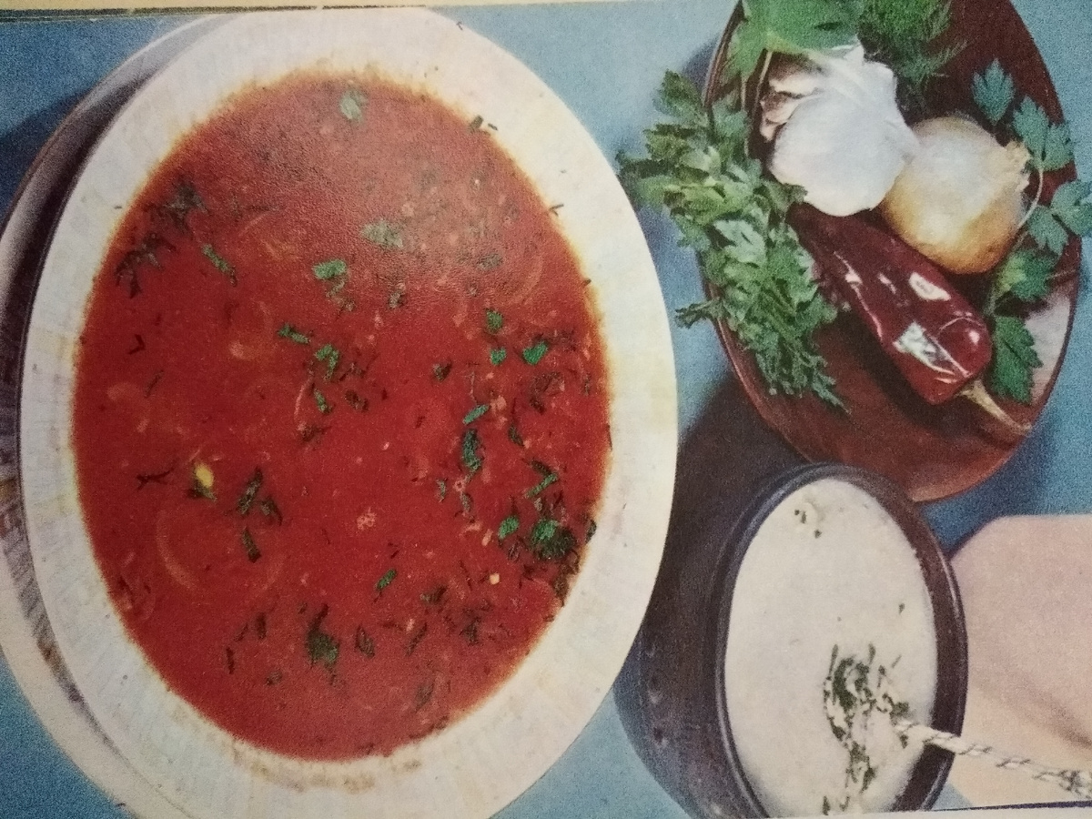 Жирные говядина-500 г, очищенные грецкие орехи-один 1,5 стакана, ну как кукурузная -1 столовая ложка, стручковый перец, чеснок, острый соус или винный уксус, зелень кинзы, соль по вкусу. Говядину обмыть, нарезать мелкими кусками, положить в кастрюлю и залить 8-10 стаканами холодной воды и поставить варить. После двух часов варки положить толчёные или провёрнутые через мясорубку орехи, истолченные вместе стручковый перец, чеснок и соль, муку разведённую небольшим количеством бульона, острый соус или уксус, затем зелень кинзы и варить ещё 10 минут