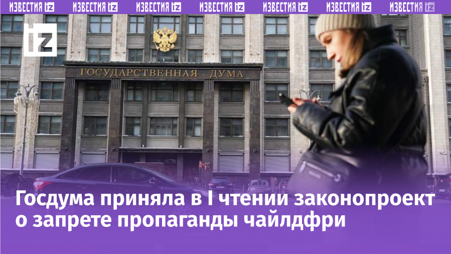 Государственная дума на пленарном заседании в среду, 17 октября, приняла в первом чтении законопроект, запрещающий публичную пропаганду идеологии отказа от рождения детей (чайлдфри). Авторами документа являются депутаты и сенаторы во главе со спикерами обеих палат парламента Вячеславом Володиным и Валентиной Матвиенко. Документом предлагается запретить распространение в интернете, СМИ, фильмах и рекламе информации, которая пропагандирует отказ от деторождения. Как указал Володин в своем Telegram-канале, речь идет именно о запрете пропаганды идеологии отказа от деторождения. «Необходимость запрета пропаганды добровольного отказа от рождения детей не предполагает вмешательство в сферу индивидуальной автономии [человека]», — заявила один из авторов принятого документа, парламентарий Эльвира Аиткулова. Матвиенко со свой стороны также указала, что законопроект не навязывает женщине деторождение, а также не содержит каких-то репрессивных мер. Также Госдума приняла в первом чтении проект, пре