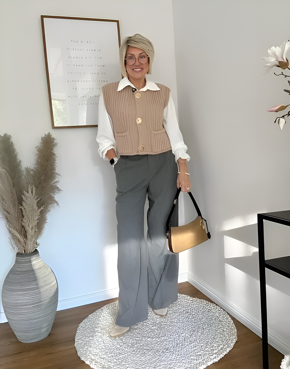 Осенью мы вынуждены носить теплую одежду, но это не значит, что нужно забыть об элегантности. Давайте рассмотрим 12 женственных ансамблей, которые идеально подходят как для офисной работы, так и для особых случаев. Наряд в стиле минимализм всегда выглядит дорого. Белоснежная блузка, вязаный жилет, брюки, замшевые ботильоны, сумка и ничего лишнего! Юбка из атласной ткани легко впишется в вечерний комплект, также модель спокойного серого или коричневого цвета можно носить на работу. Просто дополните атласный «низ» подходящей одеждой и теплой обувью, готово! Юбка-карандаш лежит в основе элегантного стиля. Чтобы убрать строгость из черно-белого сета, завершите его грубыми ботинками, бижутерией. Черный монохром – элегантно и современно, но все же не помешает «разбавить» мрачный цвет нейтральным бежем. Так, бежевая кофта согреет свою обладательницу и освежит внешность. Дамы 50+ даже в холода не отказываются от платьев. Трикотажное платье, тренч, сапоги из тисненой кожи – тепло и женственно!