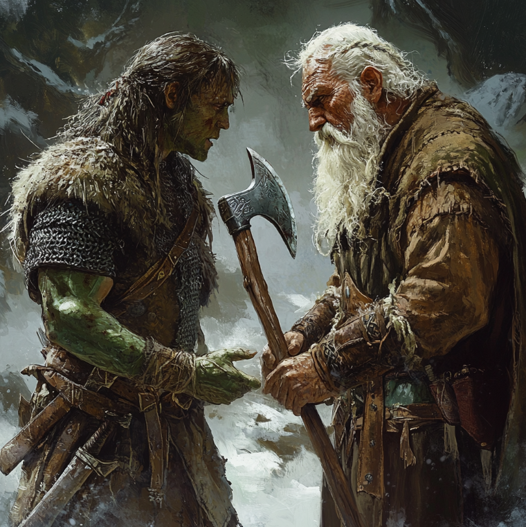 Берись за секиру, пока я тебе жердиной по хребтине не прошелся!Продолжение:
