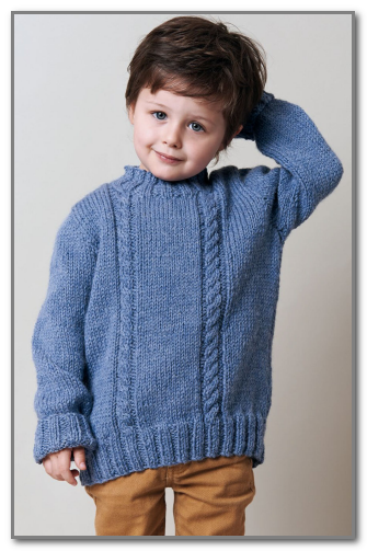 Вам потребуется: пряжа Patons Jet 12р1у (70% шерсть, 30% альпака, 74 м/50 г) - 300 (350, 450, 500, 600) г голубого цвета (Heathered Denim 837); спицы № 5mm и № 5,5mm; 5 пуговиц.