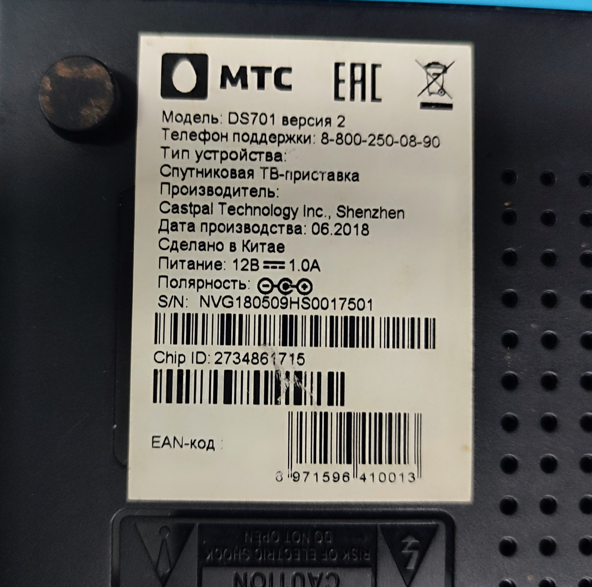Спутниковая приставка МТС DS701 версия 2 не включается. Ремонт.