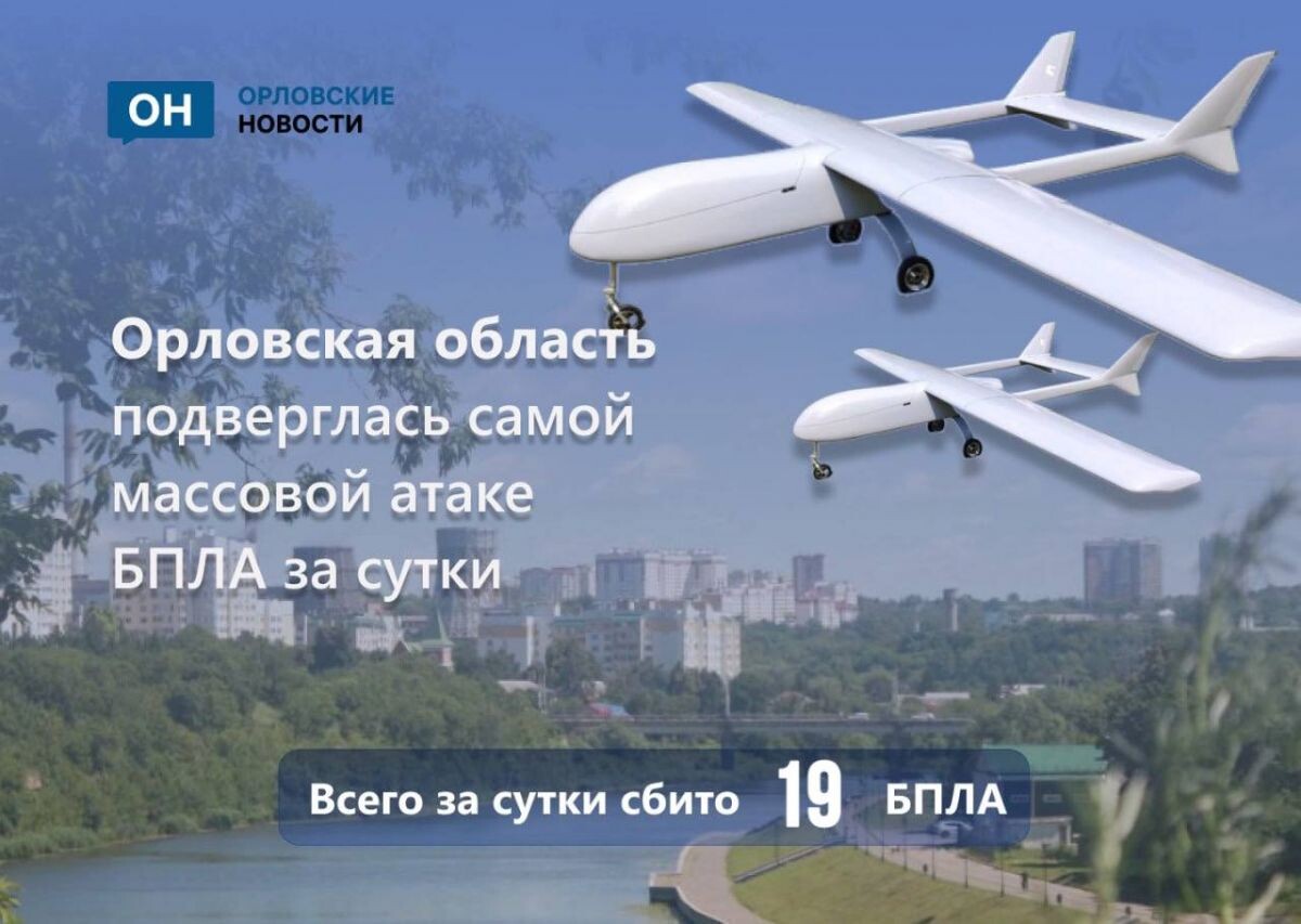 Орловская область подверглась самой массовой атаке БПЛА за сутки. В регионе сбили 19 беспилотников. Губернатор Орловской области Андрей Клычков сообщил о первой атаке вечером 16 октября. На тот момент в небе региона сбили 4 БПЛА. Утром 17 октября в тг-канале Клычкова появилась информация о еще трех сбитых беспилотниках. Попытки ВСУ атаковать регион продолжились днем. В небе над Орловской областью средства ПВО сбили пять вражеских БПЛА. Вечером Минобороны сообщило, что в регионе в общей сложности сбили ещё семь беспилотников. В результате атак никто не пострадал. Разрушений также удалось избежать.