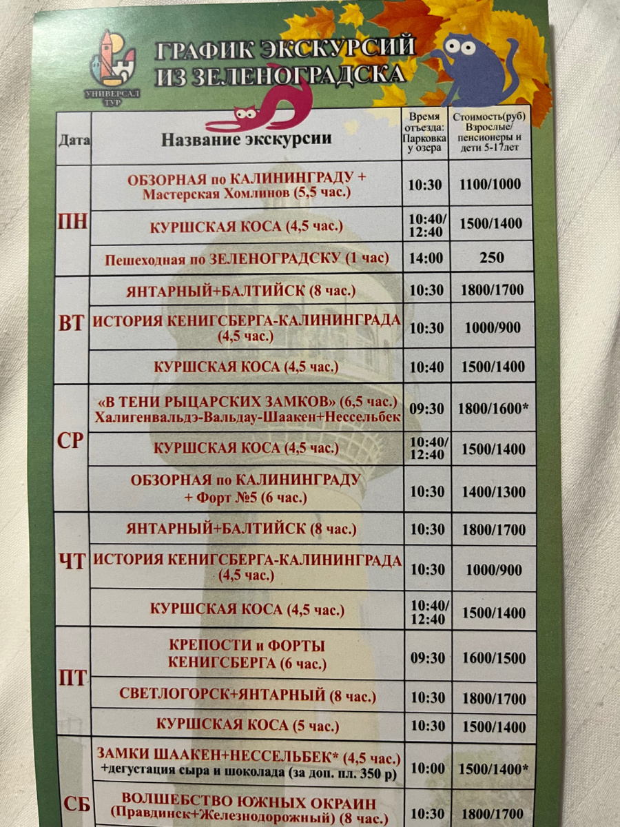 В листовке я увидела цену за такую экскурсию- 1500/1400 (взрослый билет/ скидка пенсионерам)