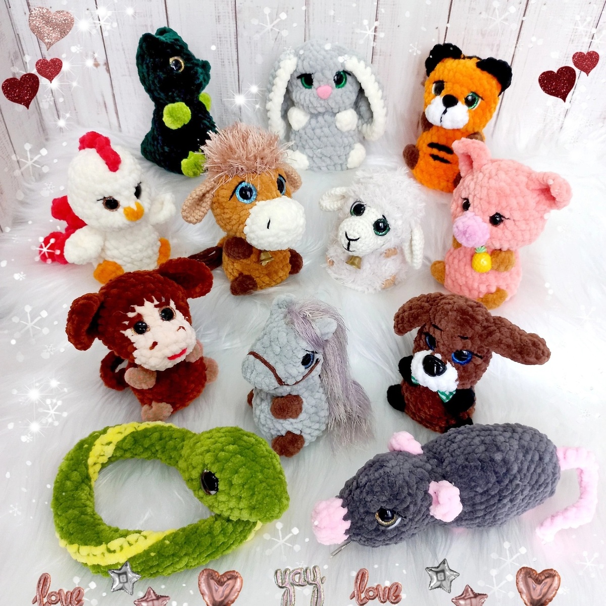 Ростиком игрушки 10-12см. Средний расход плюшевой пряжи на одну- 20-25гр.