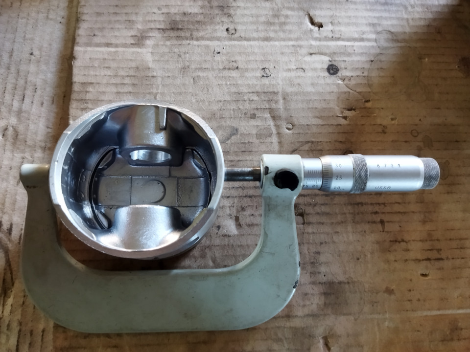 Традиционно я начинаю с проверки зазора после расточки блока. Настраиваю нутромер в соответствии с размером поршня и провожу замер. Всё в порядке: как я и заказывал, зазор составляет от 0,03 до 0,04 сотых миллиметра.