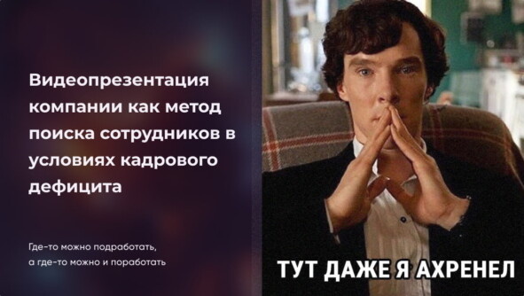 В условиях кадрового дефицита поиск требуемого сотрудника усложняется, поэтому я предлагаю действовать смело — смотреть как на потенциальных кандидатов на сотрудников конкурентов и снимать видеопрезентации компании и видеовакансии, способные переманить их.
