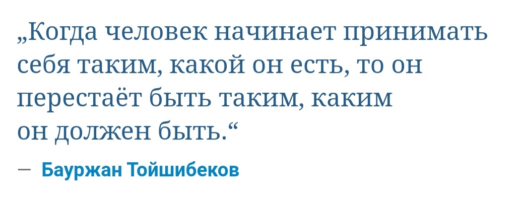 Временами в жизни каждого человека происходят события, которые буквально выбивают землю из под ног. Становится тяжело дышать, всё тело может охватывать дрожь, в горле появляется ком, а в душе боль, грусть, тоска и страх. В такие моменты в голове появляются разные пути. Можно отрицать происходящее вокруг, делая вид, что тебя это никак не касается. Можно отрицать любую помощь со стороны, потому что искренне считаешь, что принятие помощи = слабость. Можно не верить, что ситуацию получится исправить. Не верить в себя, не верить в людей. И в мир. А можно признать, что каждому порой нужно сильное плечо. И с достоинством принять чьё-то желание быть рядом в трудную минуту. Сила проявляется не в отрицании, а в принятии и признании. Отрицать можно многое. На принятие нужно время. Так много успехов зависит от принятия. Принятия своих ошибок, принятие своей внешности, принятие своей усталости, где -то слабости, порой упрямства и отсутствия гибкости. И если вы признаете в себе даже эти особе