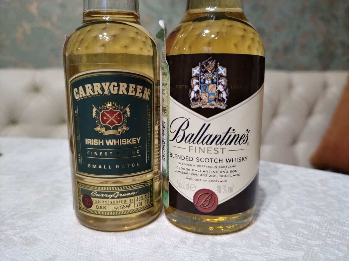 Я не вижу проблем в том, чтобы у на стали выпускать виски. Нужно только время и усилия. Хотя... Но пока больше используют импортный виски для розлива и продажи под местными (нашими) торговыми марками. Наши торговые марки, как известно, любят косить под иностранные. Я даже не буду ёрничать, что это с прицелом на экспорт в будущем )) Просто наши люди любят не наши марки. Сегодня такой виски марки Carrygreen от компании "Ладога". Позиционируется как ирландский, так как сделан из ирландских дистиллятов. Чтобы по достоинству оценить его, взял в сравнение с ним известный бренд Ballantine's. Почему его, ведь он не ирландский? Да просто его ещё не было в блоге, а это тоже базовый бленд, как и Carrygreen. Да и марка известная, и многие смогут сопоставить моё сравнение со своим опытом. И вот, что из этого получилось. Carrygreen. Сладкие травы в аромате, солодка. Вкус приемлемой резкости, с нотками, как сладкую травинку жевал в детстве, и снова солодка. На языке воспринимается довольно спокойн