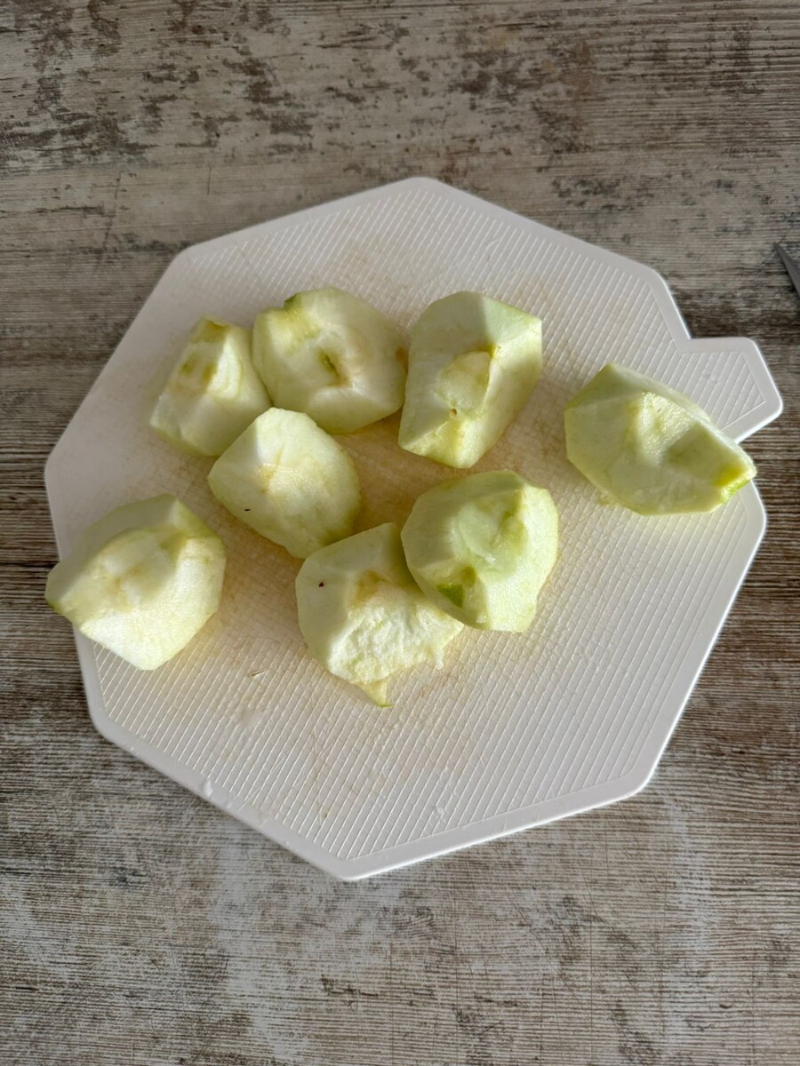 Ингредиенты: мука - 170-190 г, масло сливочное - 70 г, сахар - 50 г, яйцо - 1 шт, разрыхлитель - 1 ч. л., соль - щепотка, яблоки - 3 шт. Почистить яблоки. Яблоки нарезать небольшими кубиками. Соединить 1 яйцо и 50 г сахара в чашке. Взбить их до пышной пены. Добавить 70 г растопленного сливочного масла и взбивать еще 1 мин. Добавить муку, соль и разрыхлитель. Замешать тесто. Добавить в тесто яблоки. На противень положить пергамент. Выложить большой ложкой тесто на лист. Выпекать в духовке при температуре 180 градусов 20-25 мин. Печенье должно хорошо подрумяниться. Печенье получается хрустящими снаружи и мягкими внутри. Хранить завернув в пергамент, чтобы оно оставалось хрустящим.