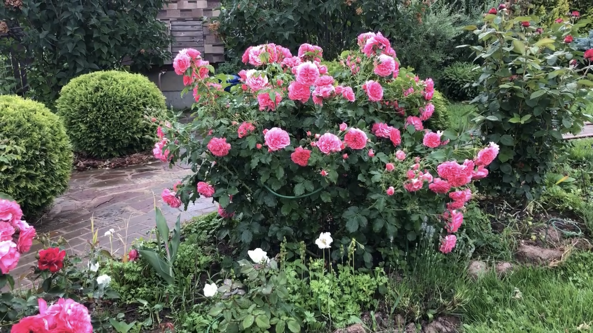 Фото автора Сад находится на севере Московской области Добрый день, уважаемые подписчики и гости канала! Розариум Ютерсен единственная в саду плетистая роза, которая растет в виде невысокого куста, а порой выглядит и как почвопокровная роза. Но по обильности и продолжительности цветения Розариум Ютерсен одна из самых первых в саду. Эта Роза Кордеса, появилась в 1957г, но зарегистрировали ее в 1977 и с этого времени она не теряет своей популярности. Заявленные размеры этой розы высота 150-200см, ширина 100-120см. В саду 2 куста Розариум Ютерсен, один посадила в 2018г, другой - в 2019г. Так как они находятся на клумбе, которая окаймляет газон, а с другой дорожку, я решила формировать их в виде куста высотой 100- 120 см. Плетистые розы долго взрослеют. Они вначале наращивают корневую систему и только потом увеличивают зелёную массу. Но Розариум Ютерсен , росла особенно медленно. У меня даже были сомнения , та ли эта Роза, несмотря на то, что цветки соответствовали описанию