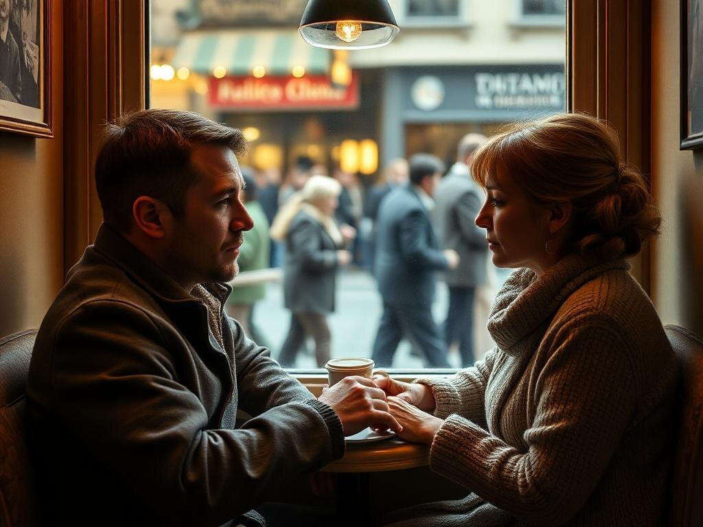 Они прошли до ближайшего кафе, где сели за небольшой столик у окна. Дмитрий заказал два капучино, и они молчали, наблюдая, как за окном мимо проносятся люди, словно кадры из прошлого. Тишину прервал Ольгин голос.