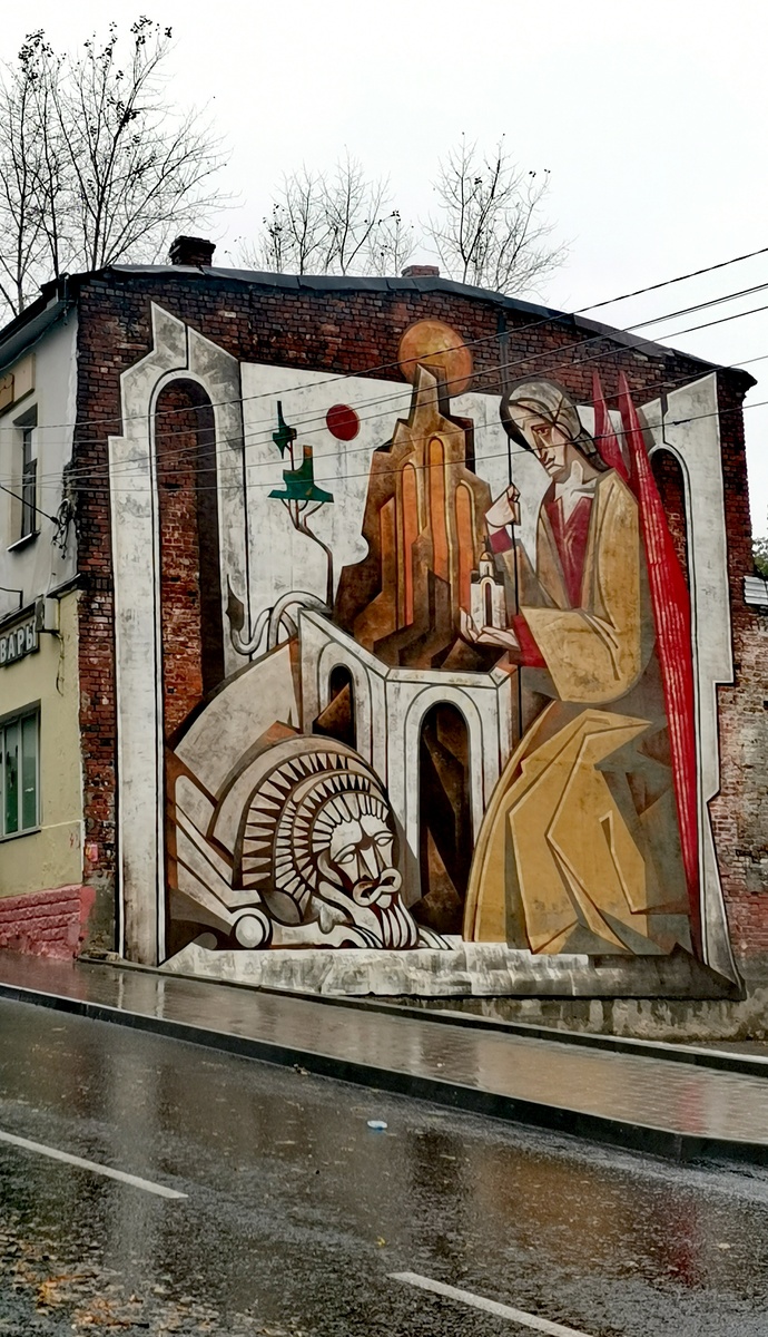 Рядом с железнодорожным вокзалом, на Вокзальном спуске, д. 1 можно увидеть граффити «Хранители». Автор - Кирилл Ведерников. Изображение несет в себе символы древнерусской традиции. Лев — символ княжеской власти и ангел с храмом на ладони, олицетворяющий духовное пространство.