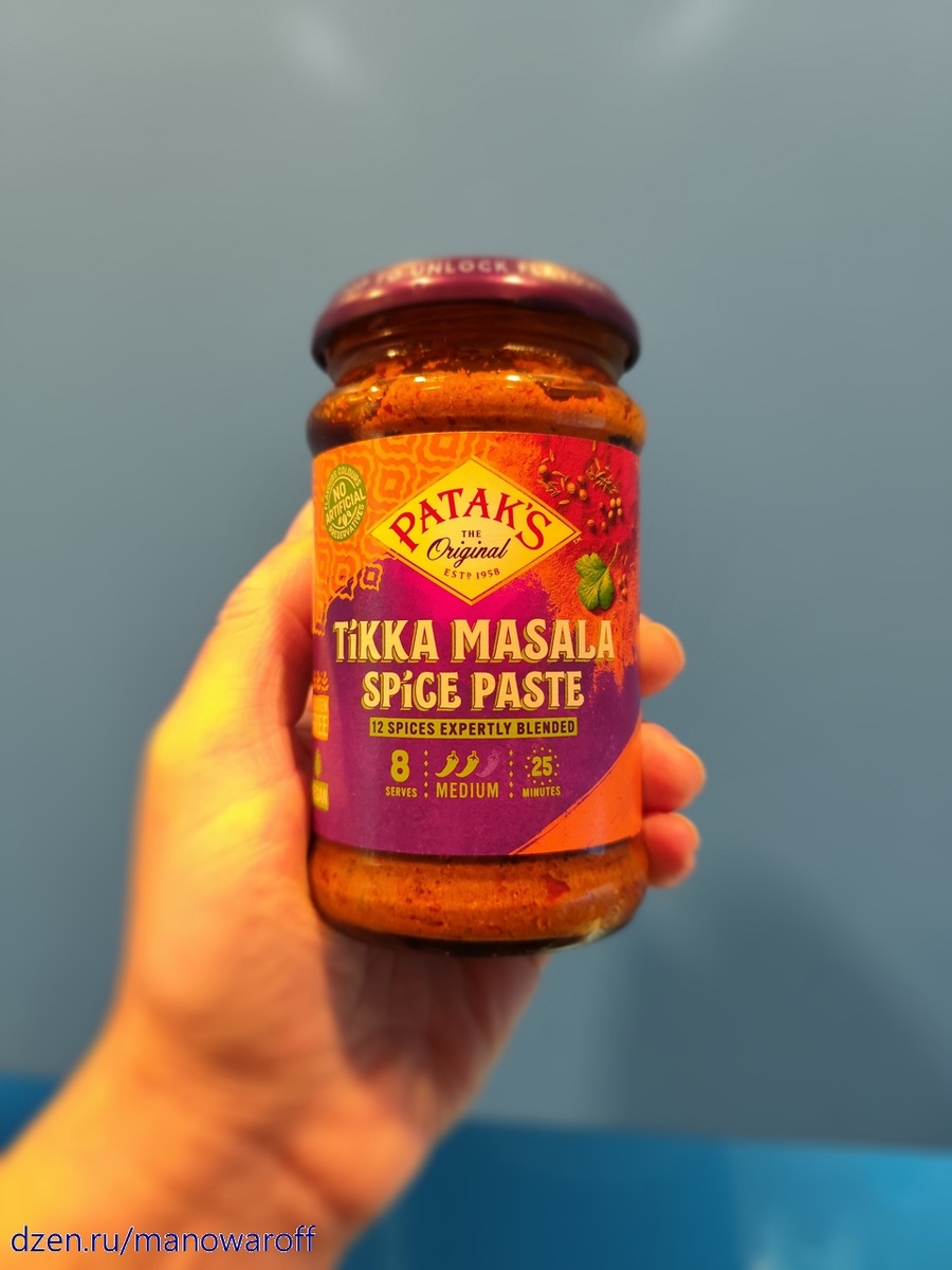Сегодня у нас блюдо индийской кухни, которое традиционно готовится из курицы, индейки или баранины (впрочем, на севере Индии, ближе к Пакистану, готовят и из священной коровы - видимо, там индусы не столь религиозные). Для приготовления блюда понадобится много всяких индийских специй, которые у нас найти довольно сложно (в Москве, конечно, есть сеть магазинов индийских специй, но в других городах с этим проблемы, как мне кажется). Поэтому проще всего купить готовую смесь специй в виде пасты. Я взял вот такую (не сочтите за рекламу), ибо с этим брендом знаком не один десяток лет. Продается на маркетплейсах. Для приготовления четырех порций нам понадобится: Курицу нарезаем небольшими кусочками, на один укус. Лук режем полукольцами. Чеснок и имбирь нарезаем помельче. В сковороде на среднем огне разогреваем растительное масло и пассеруем лук до мягкости. Добавляем чеснок, имбирь и пасту. Обжариваем до появления сильного аромата специй, после чего добавляем 50 мл воды и хорошенько перемешив