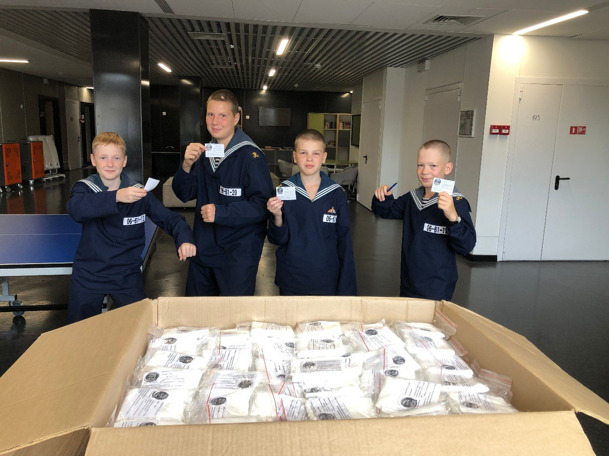 В октябре 2024 года нахимовцы 2 учебного курса продолжили участие в акции «Мойдодыр» по просьбе волонтёрского центра «Сети для СВОих. г. Калининград». Уже второй год воспитанники выполняют поставленную задачу волонтерским центром - изготавливают армейский душ, так необходимый для поддержания личной гигиены бойцам в зоне СВО. Каждый нахимовец учебного курса в свободную минуту от занятий урочной и внеурочной деятельности приходил в расположение курса и выполнял поставленную задачу: складывал геотекстиль, упаковывал в пакетик и вкладывал инструкцию по применению сухого армейского душа. Всего было упаковано 1335 наборов, которые переданы в волонтерский центр для отправки ближайшим бортом на фронт. Работа по изготовлению сухого армейского душа не прекращается, а наоборот, к шестиклассникам присоединяются пятиклассники, вновь испеченные нахимовцы училища.