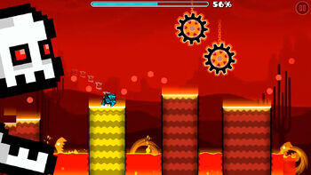 Press Start — первый и самый лёгкий уровень в Geometry Dash SubZero. Уровень начинается с прыжков через шипы, вначале просто прыжки, затем по столбам. Дальше на фоне уровня появляются череп и название уровня, после чего персонажа подбрасывает невидимый батут, и его скорость становится тройной. Вновь прыжки по столбам, которые в конце этапа завершаются нажатиями на сферы. Начинается недолгий этап шара, на котором надо вовремя изменять гравитацию, чтобы попасть на платформу. Далее снова куб, несколько раз идут прыжки по столбам, и изменяется гравитация. Скорость становится нормальной: теперь на этапе корабля надо просто облетать блоки, усеянные шипами. Для прохождения данного этапа также можно ориентироваться на пульсирующие окружности, указывающие правильный путь. На фоне снова появляется череп. На этот раз он будет пытаться "съесть" игрока. Вначале нужно в форме робота изменять гравитацию при помощи порталов, затем пролетать между наклонными блоками, усеянными шипами. Скорость понижае