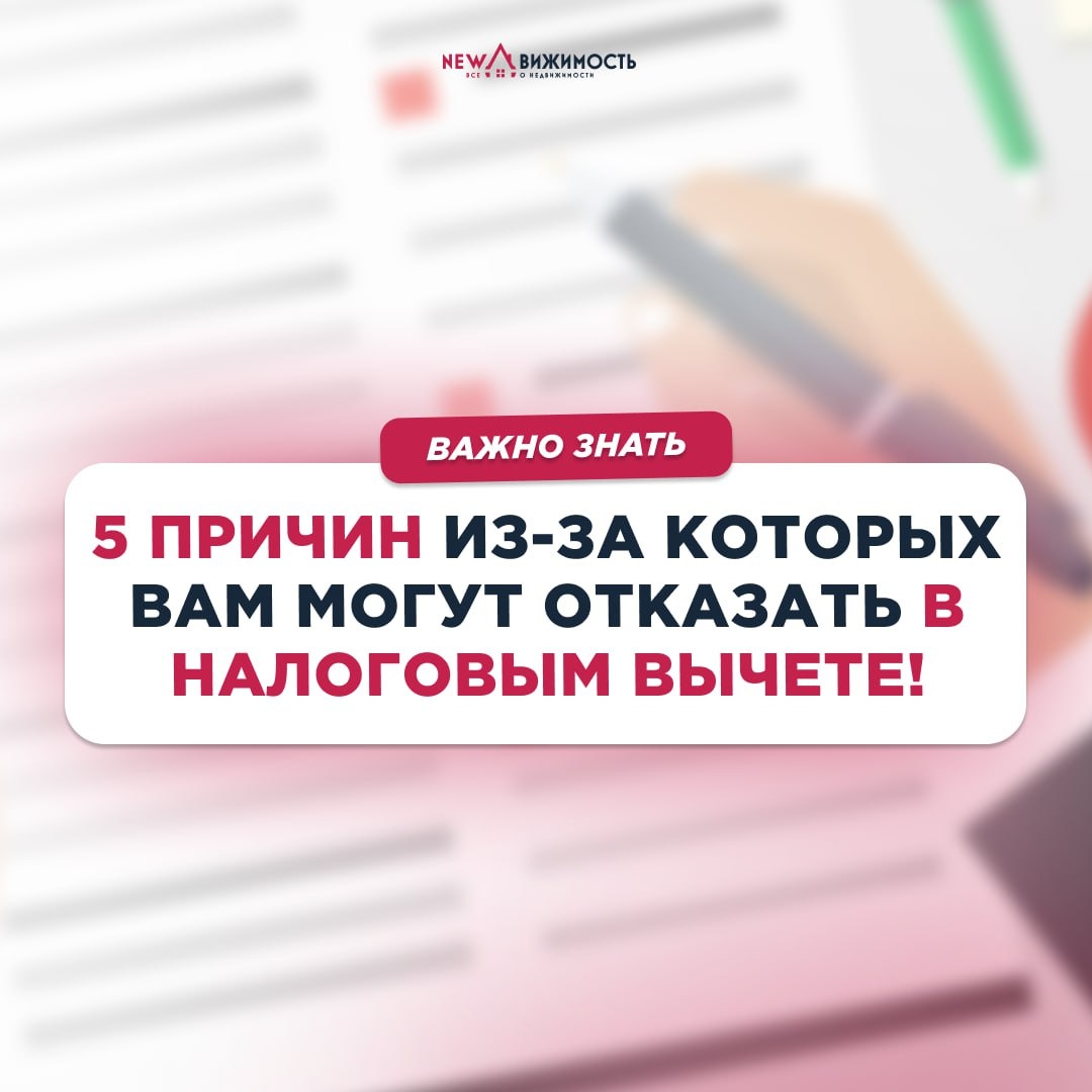 Советуем ознакомиться, если вы впервые планируете оформить налоговый вычет! Налоговый вычет – это отличный инструмент, которым владеет практически каждый владелец недвижимости. С его помощью можно не только вернуть часть денег с покупки квартиры, но и значительно сократить сумму или срок погашения ипотеки. Однако случается так, что в налоговом вычете могут отказать. Давайте разберем подробнее возможные причины отказа в выплате налогового вычета: Иногда люди могут забыть приложить один или несколько необходимых документов. Это не критично, ведь вы сможете дослать необходимые справки и вычет вам одобрят. Однако, советуем внимательно проверять перечень документов. Здесь возможны два варианта. Первый - вы не платите налог на доходы физических лиц, тогда налоговый вычет получить не получится. Второй – вы подали заявление на вычет раньше, чем получили акт приема-передачи квартиры. По имущественному налоговому вычету можно вернуть до 260 000 рублей, а по вычету с процентов по ипотеке можно ве