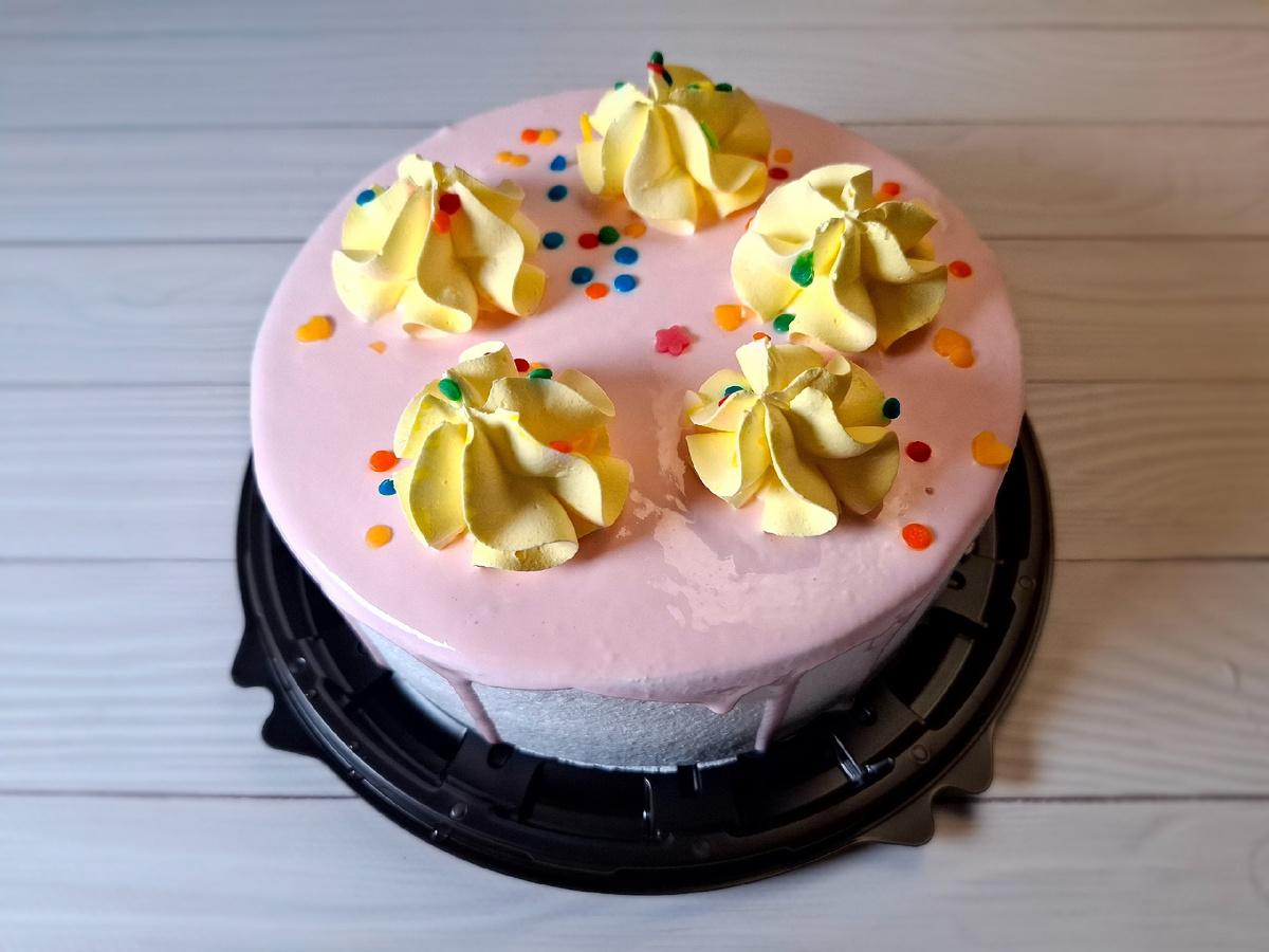 В общем, в итоге на 1000 рублей, со скидками я купила и тортик, который перед вами, и пирожки, которые вчера и ушли, и салат Селедка под шубой, и Нюське ее любимые куриные оладьи с овощами.