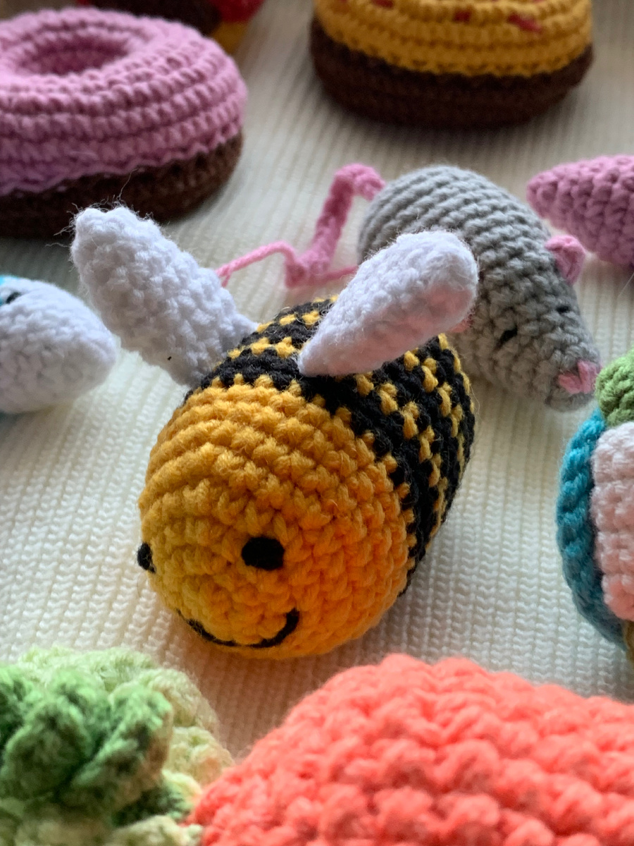Вяжем игрушку для котика или брелок для себя. Пчёлка - подробное описание. Вязание крючком