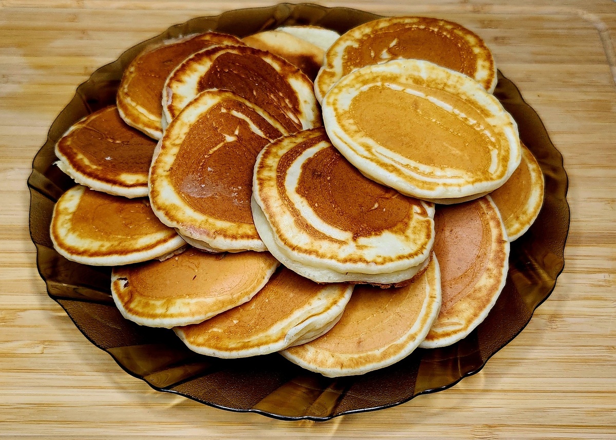 Давай приготовим оладьи, я люблю вариацию с маленьким количеством масла. По моему рецепту они получаются пышными и не жирными. Мука пшеничная 260 гр. Молоко 220 мл. Масло подсолнечное 20 мл. Яйцо куриное 1 шт. Сахар 45 гр. Соль 2 гр. (1/2 чайной ложки) Сода 6 гр. ( 1 чайная ложка) Лимонная кислота 3 гр. (1/2 чайной ложки) В глубокую посуду просеиваем муку, в нее добавляем соль, сахар, соду, лимонную кислоту и перемешиваем. Затем добавляем яйцо и снова перемешиваем. В получившуюся массу наливаем молоко и взбиваем миксером в течении 5 минут до однородной массы. Добавляем 20 мл подсолнечного масла и взбиваем еще на протяжении 2 минут. Тесто получится достаточно густым. Так и должно быть. Тесту не даем отдыхать. Жарим сразу. На разогретую сковороду ( без масла ) с помощью столовой ложки наливаем тесто. Жарим на медленном огне. Когда начинают появляться мелкие пузырьки, переворачиваем. Следим за панкейками, они готовятся быстро. Готово, пышные не жирные оладушки готовы, подаем с любимым т