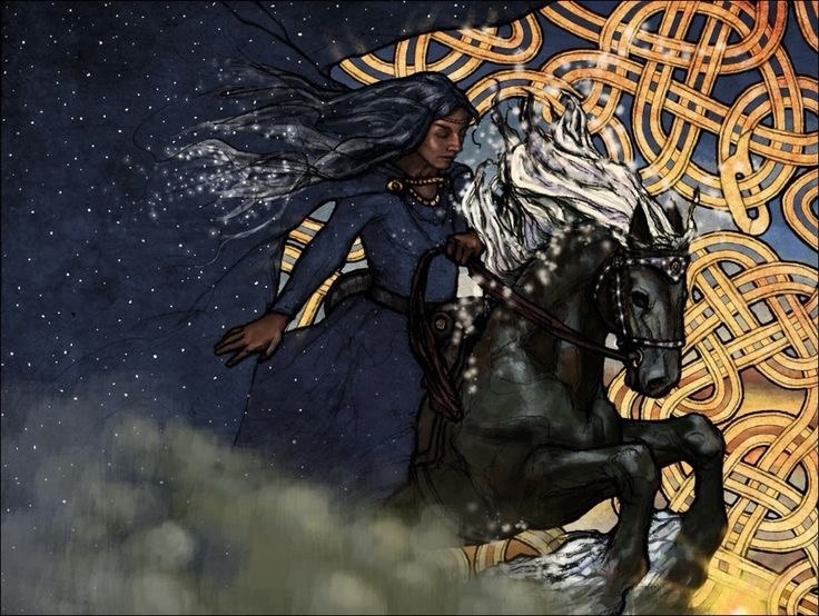 И сегодня мы поговорим о Нотт- Богине Ночи Автор текста Рейвен К. Нотт, чье имя означает просто «ночь», вестница Мани, скачет верхом на черном коне Хримфакси. Мчась по небу, Хримфакси отрясает со своих удил ночную росу. Нотт — внучка Бергельмира, первого предводителя йотунов, и дочь его сына Норфи, знаменитого великана-зодчего, по чертежам которого были построены Асгард, Трюмхейм и дворец Утгарда-Локи. Первым (из троих) мужем Нотт был йотун по имени Нагльфари, подаривший ей сына Ауда. От второго мужа, водного великана Анара, Нотт родила Йорд, будущую мать Тора. Третьим ее мужем стал рыжий альв Деллинг (Хотя в «Младшей Эдде» («Видение Гюльви», 10) Деллинг упоминается как ас), и от этого союза произошел Даг, Бог дня. Нотт — древняя великанша, одна из тех, кто родился еще до потопа (от которого она спаслась лишь благодаря тому, что гостила в то время в мире мертвых). Ходят слухи, что одним из ее любовников был древний Бог ванов Фроди; она родила ему сына Ньёрда, покровителя мореходов,