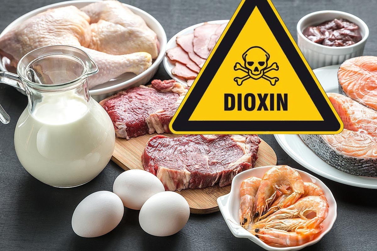 Более 90% диоксинов, попадающих в организм человека, поступает с пищей, главным образом при употреблении мясной и молочной продукции, рыбы и морепродуктов (ВОЗ).