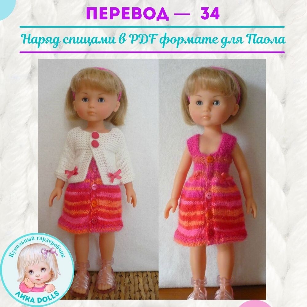 Материал: Для жакета: Пряжа 50гр/124м (55% акрил, 45% шерсть); Спицы № 2,5; Для платья: Пряжа 100гр/550м (80% акрил, 10% шерсть, 10% мохер); Спицы № 2,5; 7 пуговиц; 4 бантика. Способы вязания: лицевая гладь - лицевые ряды – лицевые петли, изнаночные ряды – изнаночные петли. платочная вязка - все ряды лицевые петли. лиц.п. – лицевая петля. изн.п. – изнаночная петля. узор «рис» - 1 ряд: лиц.п., изн.п., 2 ряд: изн.п., лиц.п. Кромочные петли в описание не указаны. Жакет Спинка Набрать 28 петель и вязать 6 рядов платочной вязкой. Продолжить вязать лицевой гладью 20 рядов. Продолжить вязать 20 рядов платочной вязкой. Далее вязать следующим образом: 9п, закрыть 10п., 9п. Каждую сторону вязать раздельно. Провязать еще 4 ряда платочной вязкой и закрыть все петли. Вторую сторону вязать аналогично. Первая половинка переда Набрать 14 петель и вязать 6 рядов платочной вязкой. Продолжить вязать лицевой гладью 20 рядов, при этом первые и последние 4п. вязать всегда платочной вязкой (планка), остальны