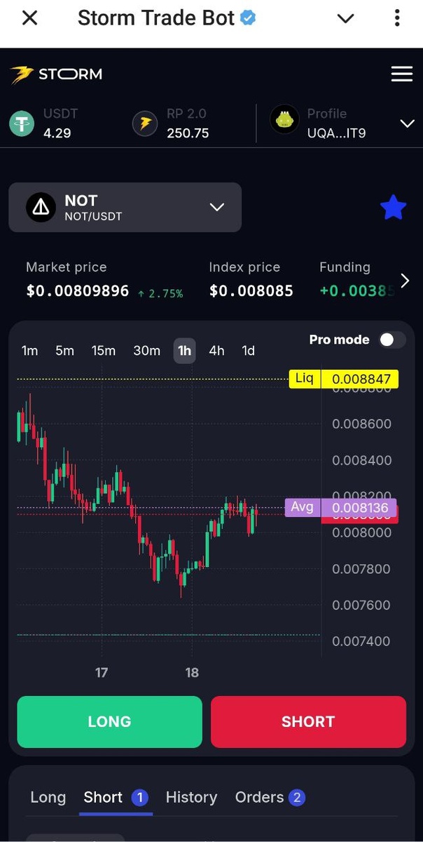 Для фарма очков в Normie нужно уделить время разделу DeFi (поставка ликидности, стейкинг, торговля), так как он будет играть важную роль в формировании высокого рейтинга. Поговорим в начале о торговле. И тут важный параметр - это объем торгов. Как наторговать большой объем? Сделать это не так сложно как кажется на первый взгляд. Используем для торговли платформу STORM. Подключаем свой кошелек, закидываем депозит в USDT или TON на кошелек, если он пустой. Можно начать с малого с 5-10$. Так же учитывайте чтобы были средства для покрытия комиссий и залогового обеспечения. Выбираем валютную пару, например NOT/USDT, плечо x10 и нажимаем short или long (в зависимости от того, что ожидаете от цены). Указываем стоп лосс (ограничиваем убытки) и тэйк профит (фиксируем прибыль). Великие гуру рекомендуют ставить тэйк профит в соотношении к стоп лоссу 2:1, 3:1. Я скажу так всё зависит от вашей торговой стратегии. Сделку также можно закрыть в ручную, не дожидаясь срабатывания ордеров. При нашем де