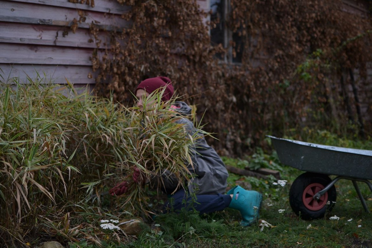 Холодный осенний сад ещё больше, чем какой бы то ни был, наполнен ощущениями. Шелест мокрой листвы под ногами, запах прелой земли, охапки срезаемых растений.