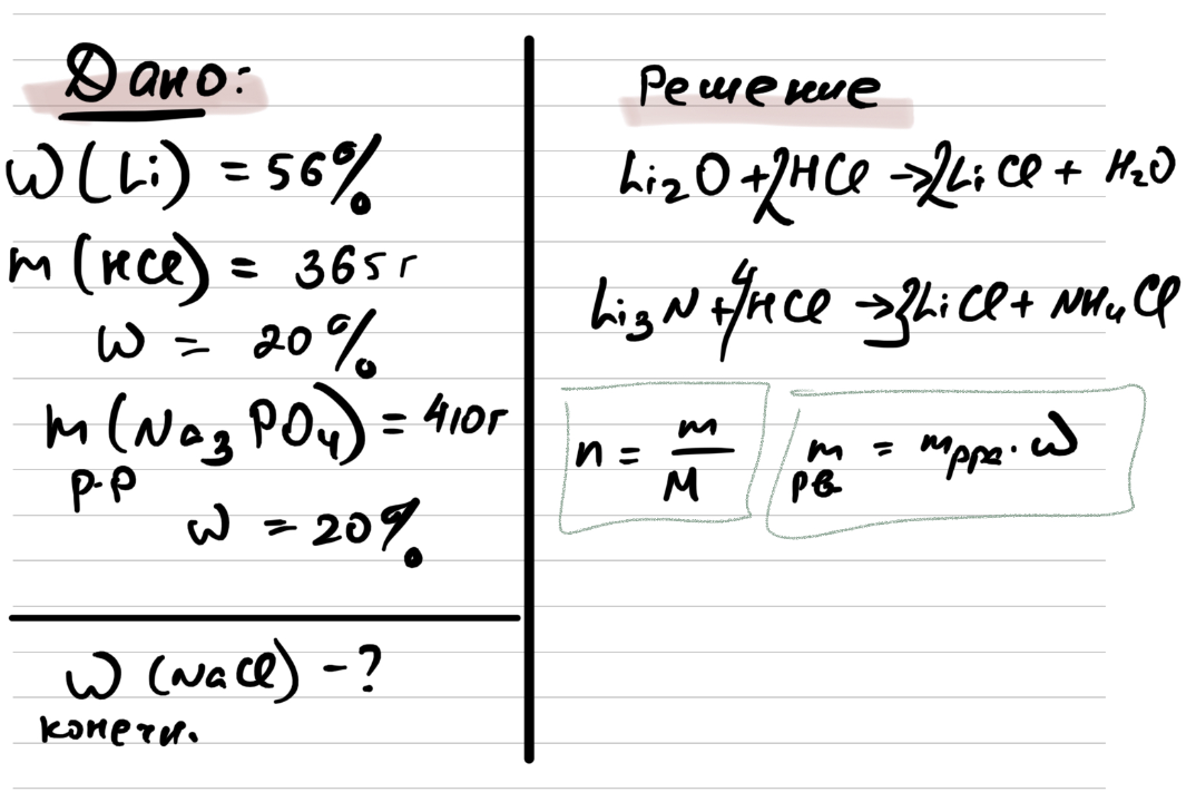 13. Найдём массу искомого NaCl и Li3PO4. Масса Li3PO4 нужна для того, чтобы вычесть её из раствора, так как это осадок.