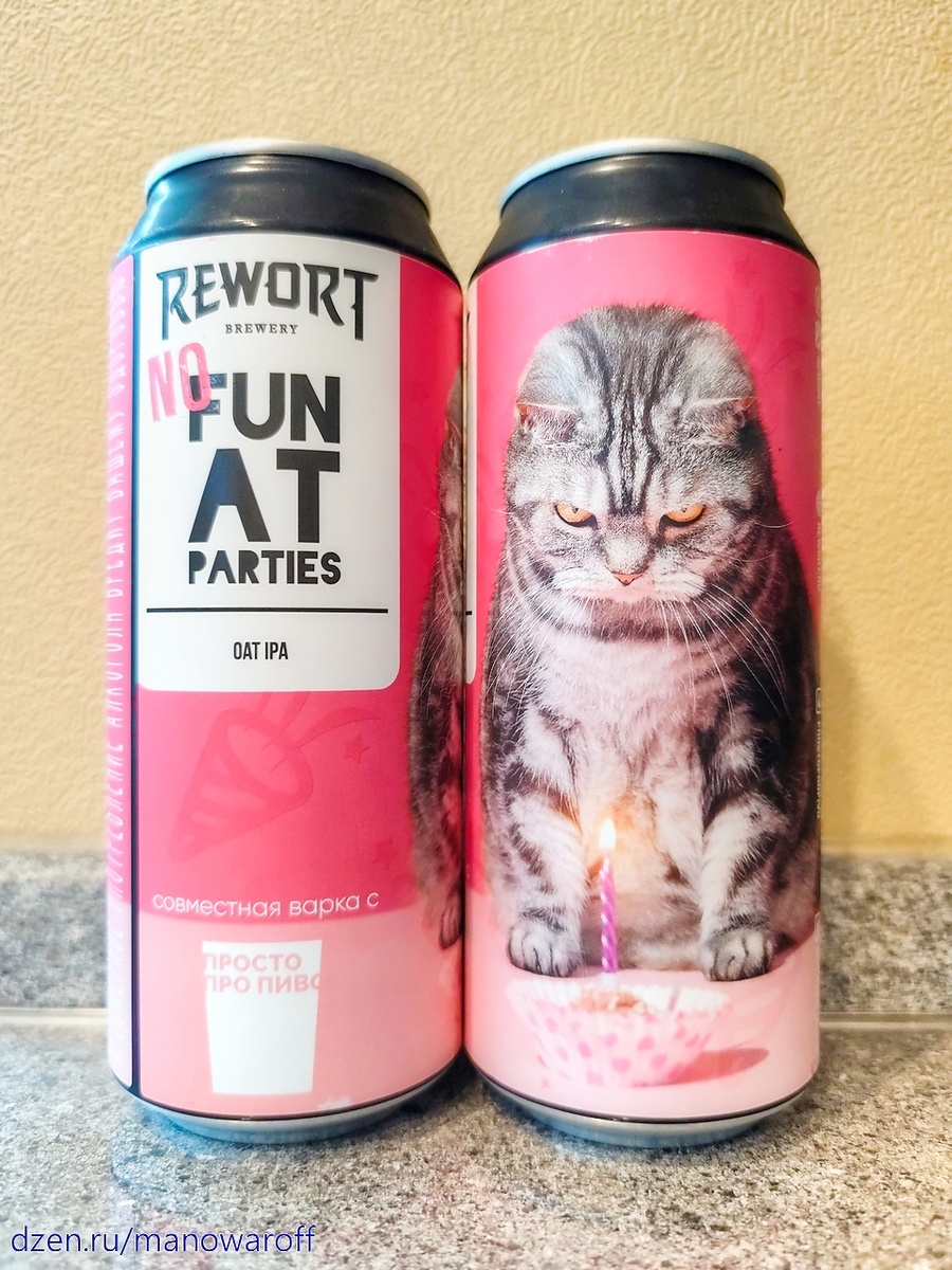 А то он какой-то мрачный сидит. А веселить будем при помощи пива (No) Fun At Parties (хотя, конечно, кошакам пиво нельзя, так что будем веселить путем вливания пенного в себя), сваренного пивоварни Rewort Brewery совместно с чем-то под названием "Просто про пиво".